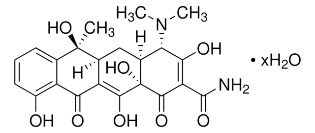 1S/C22H24N2O8.H2O/c1-21(31)8-5-4-6-11(25)12(8)16(26)13-9(21)7-10-15(24(2)3)17(27)14(20(23)30)19(29)22(10,32)18(13)28;/h4-6,9-10,15,25,27-28,31-32H,7H2,1-3H3,(H2,23,30);1H2/t9-,10-,15-,21+,22-;/m0./s1