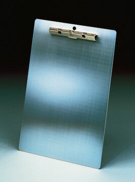 Strong, lightweight, 0.05 in. aluminum clipboard does not absorb oil or chemicals. Features heavy-duty, spring-action clip with extra teeth for greater holding power. Measures 8" 7/8 × 13" 3/4 in.