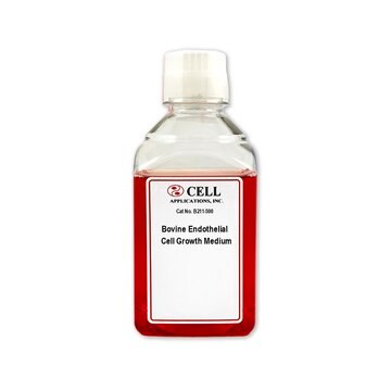Bovine endothelial cell growth medium (500 ml) has been used to culture bovine aortic endothelial cells to study the effects of hydrostatic pressure depressurization on cells in culture.