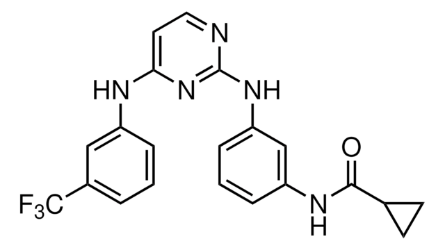 FC(F)(F)c1cccc(Nc2ccnc(Nc3cccc(NC(=O)C4CC4)c3)n2)c1