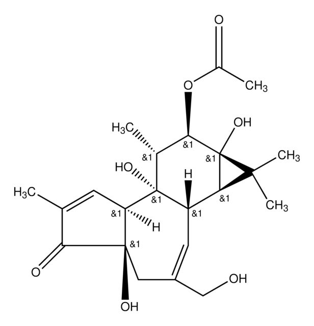 Sixteen known compounds isolated from the whole plants of Euphorbia tangutica, including phorbol-13-actate (1) previously synthesised and obtained from a natural source for the first time, were evaluated in vitro against a panel of human cancer cell lines using the
