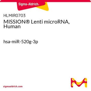 Sigma′s Mission Lenti-miRs express miRNAs from a common backbone, whose structure meets requirements for accurate Dicer processing and a partially complementary strand is designed to mimic the base pairing pattern in the backbone structure using a proprietary algorithm. Oligos containing the microRNA sequences are cloned into the TRC2-pLKO-puro vector. Each miRNA construct has been cloned and sequence verified. Mature microRNA sequences are obtained from miRBase.