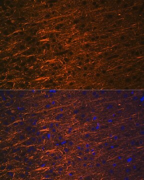 A synthetic peptide corresponding to a sequence within amino acids 350-450 of human Alpha Internexin (Q16352).