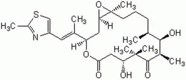 A structural analog of Epothilone A (Cat. No. 325000) with similar biological properties. However, EpoB is about 10-fold more potent than EpoA against P-glycoprotein-expressing multidrug resistant (MDR) cells (IC50 = 2 nM for MDR CCRF-CEM/VBL100 cells).