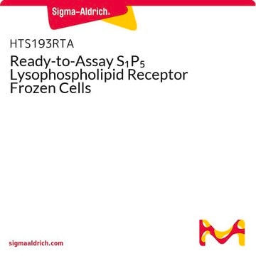 Sphingosine 1-phosphate (S1P) is a biologically active lysophospholipid that transmits signals through a family of five G-protein-coupled receptors to regulate cell proliferation, migration, cytoskeletal organization, and differentiation (Spiegel and Milstien 2003). S1P5 can couple with Gi/o and G12/13, and it mediates S1P induced adenylate cyclase inhibition and Ca2+ mobilization like the other S1P receptors. However, unlike the other S1P receptors, it mediates inhibition of MAPK activation and cell proliferation (Im et al., 2000). S1P5 is predominantly expressed in the white matter tracts and oligodendrocytes and is particularly abundant in the anterior commissure, corpus collosum, and optic tract (Terai et al., 2003). S1P induces process retraction in pre-oligodendrocytes and supports cell survival in mature oligodendrocytes by activating S1P5, which indicates a role for S1P5 in maturation and myelination of oligodendrocytes (Jaillard et al., 2005). Millipore′s cloned human S1P5-expressing cell line is made in the Chem-5 host, which supports high levels of recombinant S1P5 expression on the cell surface and contains optimized levels of a recombinant promiscuous G protein to couple the receptor to the calcium signaling pathway. Thus, the cell line is an ideal tool for screening for agonists, antagonists and modulators at S1P5 Receptor.