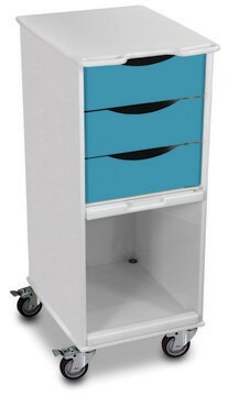 Lockable compact cart with 3 drawers and bulk storage area