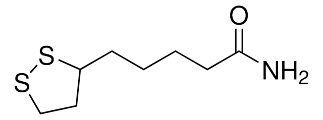 别名: 1,2-Dithiolane-3-valeramide, (±)-1,2-Dithiolane-3-pentanamide, (±)-1,2-Dithiolane-3-valeramide, (±)-Thioctic acid amide, DL-α-Lipoic acid amide, DL-6,8-Thioctamide, Ticolin; Vitamin N, α-Lipoamide